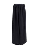 Kristina Ti’s wool and silk long Skirt combines elegance and movement with its semi-wheeled design. The side closure is embellished with golden geometric buttons, adding a sophisticated and distinctive touch to this timelessly stylish garment.