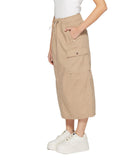 The Street One women’s long skirt, model 361467, is a versatile and modern piece, perfect for completing casual and urban looks. Made from a soft fabric composed of 98% cotton and 2% elastane, this skirt offers comfort and freedom of movement all day long. The design features a midi length, adjustable waist with drawstring, and practical side pockets, including a cargo pocket for a functional and contemporary touch. The straight cut enhances the silhouette, while the refined details make this skirt ideal for any season, whether paired with sneakers or sandals.