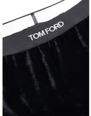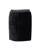 Tom Ford Black Velvet Mini Skirt. With elasticated waistband with contrasting jacquard logo, internal lining. Composition: 82% Viscose, 18% Silk. Lining: 100% Silk. Internal SKU: 25FEB95