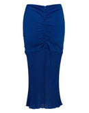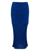 Tom Ford Jersey Midi Skirt with Ruffle. In China blue, front and back ruffle, mermaid-effect knitwear skirt bottom. Covered zip closure on the back. Composition: 90% Viscose, 10% Polyamide.