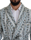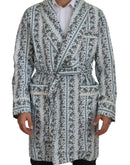 Dolce & Gabbana Blue Floral Cotton Robe Coat Jacket