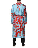 Dolce & Gabbana Blue Red Coral Print Wrap Robe Coat Jacket