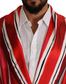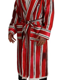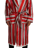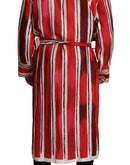 Dolce & Gabbana Red White Striped Silk Mens Night Gown Robe