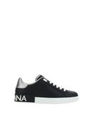 Dolce & Gabbana Black Calf Leather Bos Taurus Low Top Sneakers