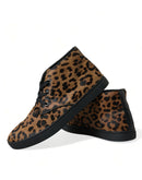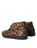 Dolce & Gabbana Brown Leopard Pony Hair Leather Sneakers Shoes