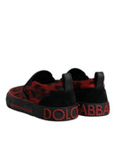 Dolce & Gabbana Red Black Leopard Cotton Men Low Top Sneakers Shoes