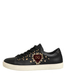 Dolce & Gabbana Black Leather Sacred Heart Sneakers Shoes