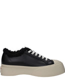 The product with MPN SNZW007320P504500N99 and code F82555 leather in black is a sneakers designed by Marni. It has features like front logo, back logo, fur detail.