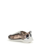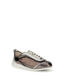 Pinko’s Reby 10 Sneakers are made of sequined mirror fabric with a low-top silhouette and lace-up closure. They feature side logo embroidery and an elegant embossed Loving Birds detail on the back. Stitched piping and a rubber sole complete the design.