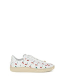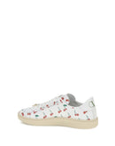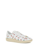 Valentino Garavani’s Royco Cherryfic Sneakers combine pop spirit and craftsmanship in a bold design. Made of soft tasseled calfskin with a Cherryfic pattern, they feature laces decorated with a removable Signature VLogo accessory in antique-effect brass. The same logo, screen-printed on the back, reinforces the brand’s identity. The rubber sole completes the silhouette with comfort and urban style.
