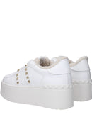 The product with MPN S0GG8VJZNM0 and code F83007 leather in white is a sneakers designed by Valentino Garavani. It has features like studs, front logo, fur inside.