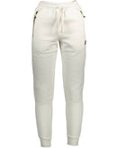 sporty trousers, elastic waistband with laces, elastic at the ankle, 2 zipped pockets, 1 back pocket, embroidery, contrasting details, logo