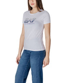 Discover the EA7 short-sleeve t-shirt for women, an essential piece for your wardrobe. Made with a composition of 95% cotton and 5% elastane/lycra, this t-shirt offers exceptional comfort and a perfect fit. The prominent EA7 logo adds a stylish touch and recognition, making it ideal for your daily activities or a casual-chic look. Perfect to pair with jeans or sporty pants, this t-shirt is versatile and suitable for various occasions. Choose the quality and distinctive design of EA7 to best express your personality.