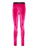 Tom Ford Fuchsia Stretch Velvet Leggings. Skinny stretch, elastic waistband with contrasting logo print, straight leg, soft, iridescent fabric.