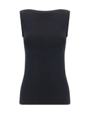 The Aurora Top by Wolford is a sleeveless piece with a minimalist and elegant design. Featuring a straight neckline, it has a monochrome pattern that makes it versatile and sophisticated, perfect for both casual and refined outfits.