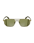 Elevate your style quotient with these sophisticated Calvin Klein sunglasses, crafted for the modern connoisseur. The sleek metal frame holds the enigmatic square green lenses, designed to capture attention while offering protection. The contrasting details shimmer against the golden tinge, with a subtle logo hinting at the luxury behind your gaze. Sized to perfection: lens width 56 mm, bridge width 17 mm, temple length 145 mm. Embrace the aura of exclusivity and trendsetting design.