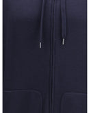 Brunello Cucinelli cashmere Hoodie features an adjustable hood with drawstring for a customizable fit. The front closure features a double-slider zipper for added convenience and adjustability. Two patch welt pockets on the front add convenience, while ribbed cuffs and hem ensure a snug, comfortable fit. The monochrome design lends a touch of minimalist elegance, while the regular fit offers comfort without sacrificing style. A versatile garment, perfect for everyday wear or moments of relaxation.