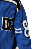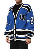 Dolce & Gabbana Blue Cotton Logo Patch Ribbed Knit Cardigan Sweater