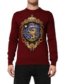 Dolce & Gabbana Burgundy Cashmere Lion Crest Pullover Sweater