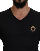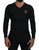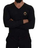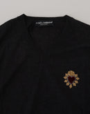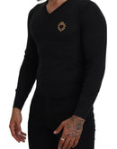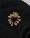 Dolce & Gabbana Gray Cashmere V-neck Gold Heart Sweater