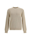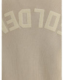 Beige ribbed-knit sweater by Golden Goose combines comfort and style. The crewneck and long sleeves provide a versatile fit, while the printed logo on the back adds a distinctive detail that makes the piece instantly recognizable. Perfect for casual-chic outfits or layered with more sophisticated pieces