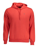 Make a bold statement in this fiery red Napapijri hooded sweatshirt, featuring the iconic brand logo with stylish application. Crafted with a commitment to eco-friendly fashion, this sweatshirt comprises 70% sumptuous organic cotton, blended with durable polyester for enduring comfort and wear. A perfect fusion of style-conscious design and casual refinement, it promises to be a standout piece in any contemporary wardrobe.