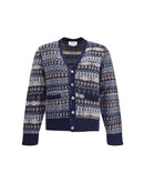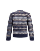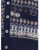Thom Browne’s Fair Isle Cardigan reinterprets a winter-wear classic with the brand’s unmistakable elegance. Featuring the iconic Fair Isle print, it has a traditional silhouette with a V-neck and front button closure. Ribbed hem and cuffs complete the design, offering structure and comfort. A garment that combines sartorial sophistication and timeless appeal.
