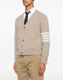 Thom Browne Shetland Wool 4-Bar Relaxed Fit V Neck Cardigan