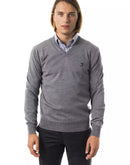 Elevate your wardrobe with Uominitaliani’s V-neck Sweater, a masterpiece of Italian craftsmanship. Finely embroidered and crafted from sumptuous extrafine Merino wool, this gray pullover embodies luxury and sophistication. Perfect for discerning gentlemen who appreciate the blend of traditional tailoring and modern flair. Wrap yourself in unrivaled comfort and exude effortless style.