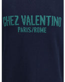 The Chez Valentino Sweater by Valentino is an iconic garment with a distinctive character. Crafted with ribbed trim on the crew neck, hem, and cuffs, it is distinguished by the Chez Valentino signature embroidered on the front, giving it a graphic and recognizable touch. Perfect for adding personality to casual or more refined looks.