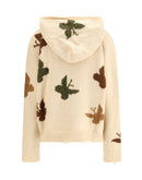 The Rainbow Sweater by Baziszt is a contemporary and artistic piece. Designed with a hood and no front opening, it features a deliberately unfinished hem that enhances its deconstructed look. The butterfly details, whether applied or printed, add a poetic and vibrant touch, balancing delicacy with urban style.