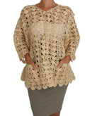 Dolce & Gabbana Beige Cardigan Crochet Knitted Raffia Sweater
