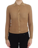 Dolce & Gabbana Beige Knitted Cotton Polo Cardigan Sweater