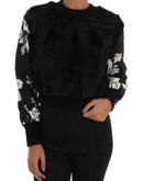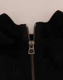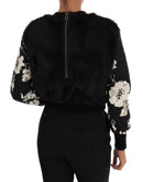 Dolce & Gabbana Black Fur Floral Brocade Zipper Sweater