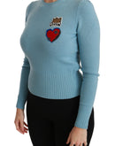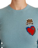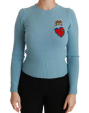 Dolce & Gabbana Blue Wool Queen Heart Pullover Sweater
