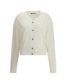 Merino wool Cardigan by Jacquemus combines elegance and comfort with a V-neckline and front button closure. Finished with a ribbed hem and cuffs, it is embellished with an embroidered logo on the back for a distinctive, modern touch.