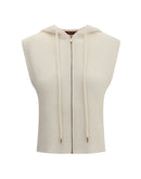 The Mescal hooded Vest by Max Mara Studio blends comfort and sophistication in a pure, minimal form. The wool and cashmere knit softly embraces the body, while the metal zip and adjustable drawstring add refined, subtle detail. A versatile piece designed to bring warmth and elegance to any moment of the day.