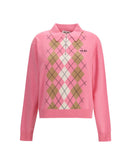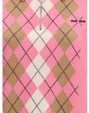 The cashmere zip Polo by Miu Miu reimagines a timeless staple with a refined Argyle intarsia pattern. Soft and luxurious, it is defined by contemporary elegance and crafted details such as the English shoulder, ribbed cuffs and hem. The regular fit and zip-front closure highlight its versatile nature, while the intarsia logo adds a signature, distinctive touch.