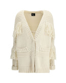 The Tricot Cardigan by Moncler Grenoble reimagines knitwear through a dynamic sense of elegance. The V-neck and button closure outline a timeless shape, enhanced by fringe accents and a logo patch on the sleeve. The wide ribbed trims and back fringe band add movement and personality to a piece that fuses comfort with contemporary alpine style.