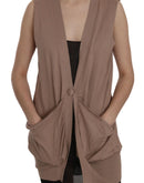 PINK MEMORIES Brown 100% Cotton Sleeveless Cardigan Top Vest