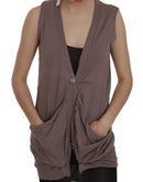 PINK MEMORIES Brown 100% Cotton Sleeveless Cardigan Top Vest