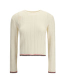 Thom Browne’s Ribbed Sweater features a ribbed crew neck and edges finished in the brand’s iconic tricolor colors, adding a distinctive and recognizable detail. An essential garment but with strong character, perfect for contemporary style.