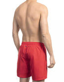 Dive into the season with Bikkembergs’ vibrant red swim shorts, boasting a striking front print that ensures you’ll stand out whether you’re beach-bound or poolside. Function meets fashion with practical side pockets and an adjustable elastic waistband for the perfect fit. Designed for the modern man who loves to make a bold statement in every splash.