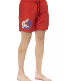 Dive into summer with panache in these Bikkembergs swim shorts, featuring a striking dégradé print that fades from fervent reds to subtle hints of sunset. Equipped with side pockets, these shorts blend functionality with fashion. An elastic waistband with a drawstring ensures a perfect fit for all your aquatic adventures.