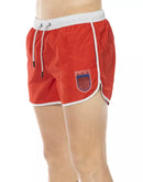 Dive into the essence of summer with Bikkembergs’ striking red swim shorts, designed for the modern man who commands attention. With a bold front print that embodies the brand’s sporty elegance, these swim shorts boast practical side pockets and an additional back pocket for functionality. The elastic waistband cinches with a drawstring, ensuring a perfect fit as you make a splash. Discover the blend of comfort and style that only Bikkembergs can deliver and make a statement at the beach or pool.