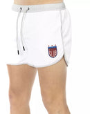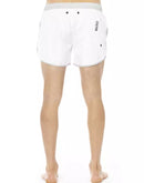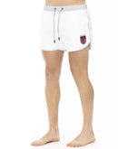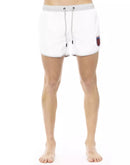 Dive into the season with style in these Bikkembergs Swim Shorts, featuring an eye-catching front print that sets you apart from the crowd. Crafted for comfort and flair, they boast convenient side pockets and an additional one at the back. The elastic waistband with drawstring ensures a perfect fit for your beach escapades or poolside lounging. Boldly embrace your love for fashion with these Bikkembergs essentials.