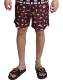 Dolce & Gabbana Maroon Hats Print Beachwear Shorts Swimwear