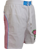 Dsquared² White Pink Logo Print Men Beachwear Shorts Swimwear