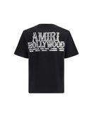 The Hollywood logo T-shirt by Amiri channels a refined sense of contemporary luxury inspired by the free-spirited attitude and understated edge of the late twentieth century. Its relaxed, slightly oversized silhouette conveys effortless sophistication, while the rib-finished crew neckline adds a crafted touch to the clean structure. The arched “Amiri Hollywood” lettering, placed subtly on the chest and expanded across the back, serves as both a graphic statement and a nod to the brand’s Californian roots. Crafted from premium cotton, the piece delivers exceptional comfort and embodies the meticulous attention to detail that defines Amiri’s distinctive aesthetic.hollywood tee