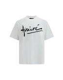 The Script T-shirt by Amiri elevates a timeless essential through a contrasting script logo placed on the front, adding a refined graphic statement to a clean silhouette. Crafted from pure cotton, it features a classic round neckline, short sleeves, a straight hem, and tonal stitching, delivering an understated yet polished everyday piece.